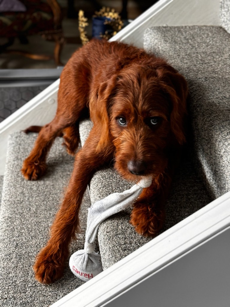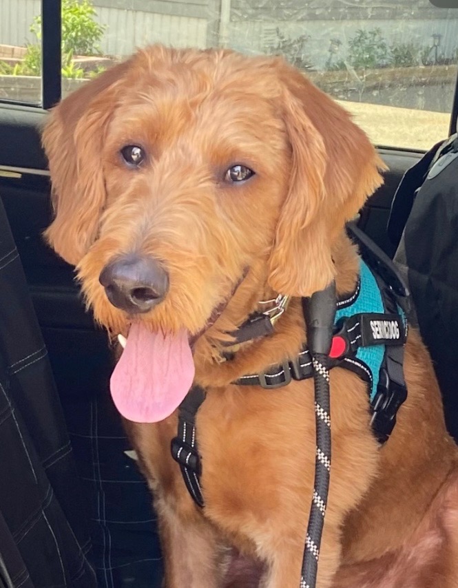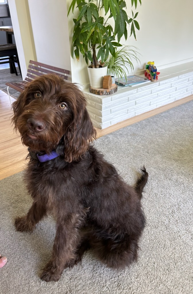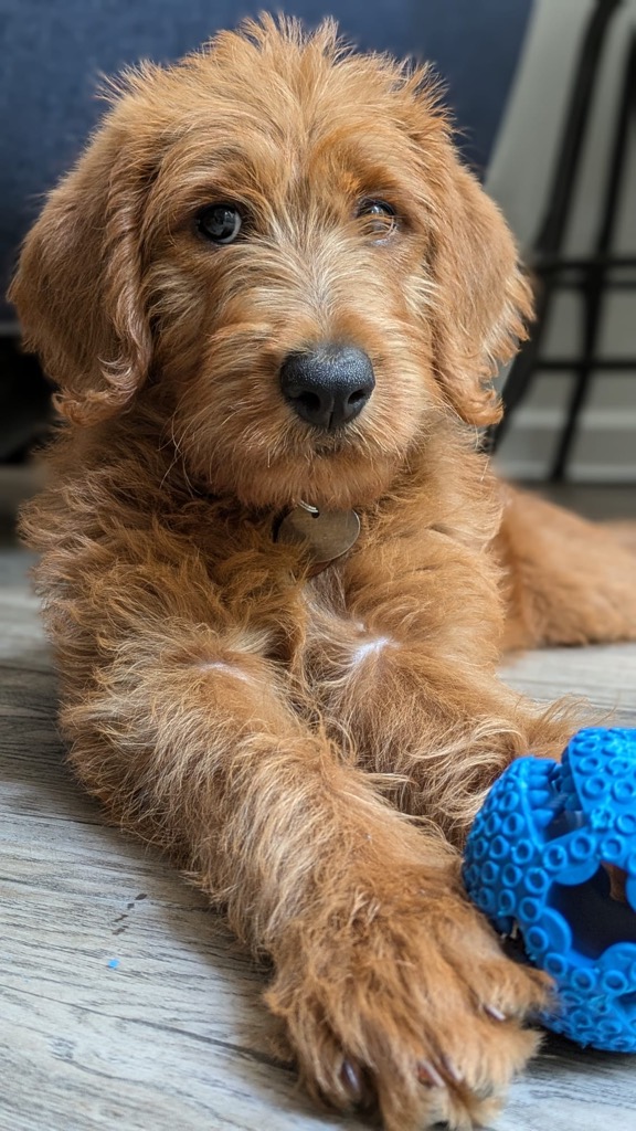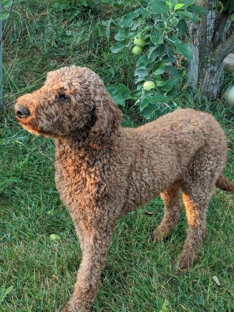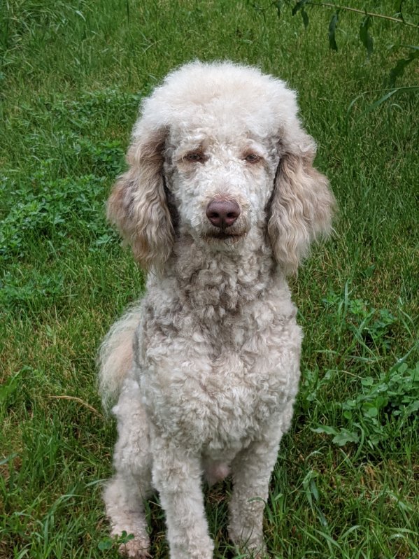 Our Sire is a 47 lb purebred small standard poodle with a red coat. He has a friendly and mild temperament and loves being with people. Ember has been genetic health tested.