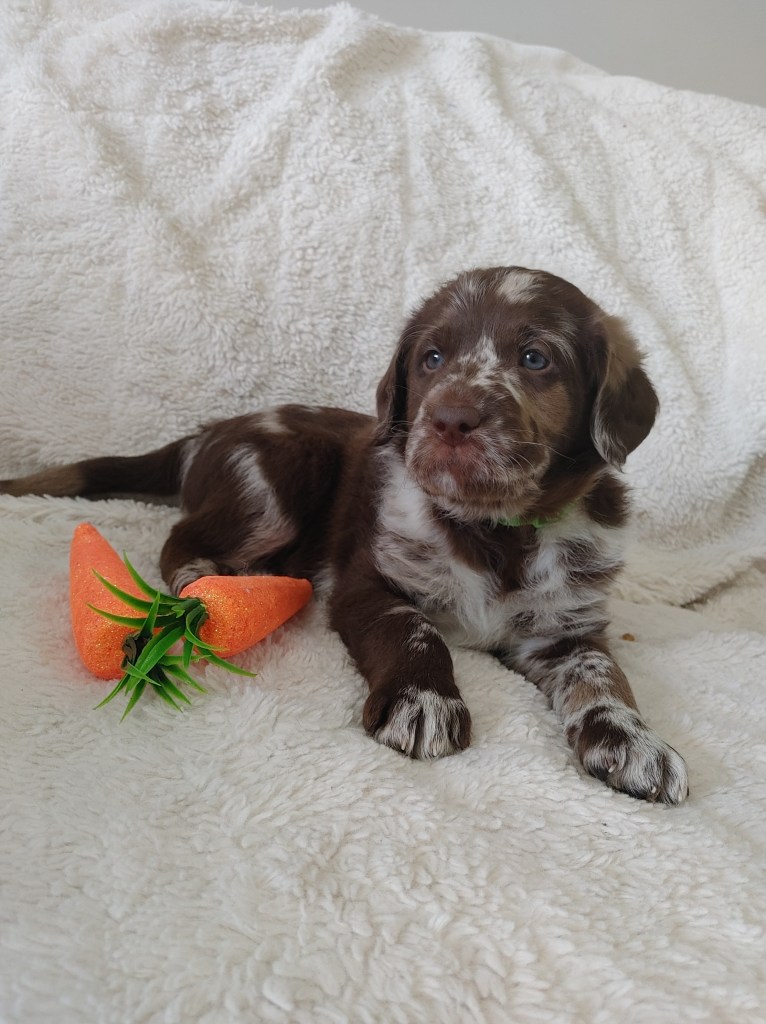 Our litter of red F1 Labradoodle puppies have all found their new forever homes. We have one male and one female merle puppy available and two chocolate males and one chocolate female ready for their new homes at the beginning of April.